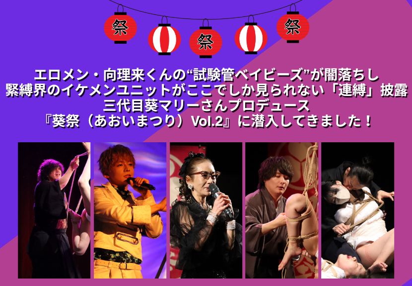 エロメン・向理来くんの“試験管ベイビーズ”が闇落ちし、緊縛界のイケメンユニットがここでしか見られない「連縛」を披露!……三代目葵マリーさんプロデュース『葵祭(あおいまつり)Vol.2』に潜入してきました!